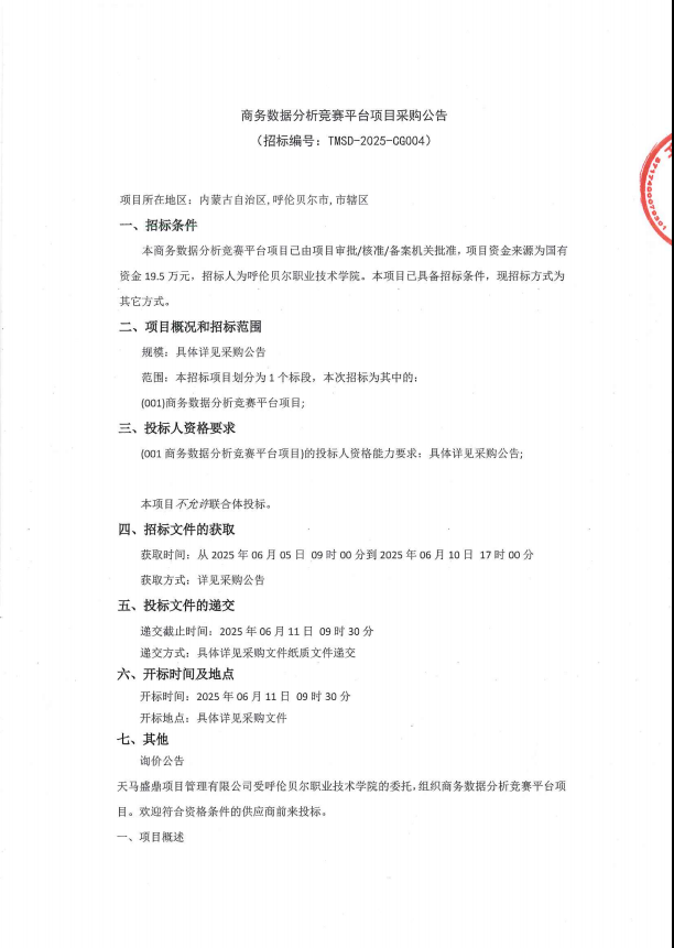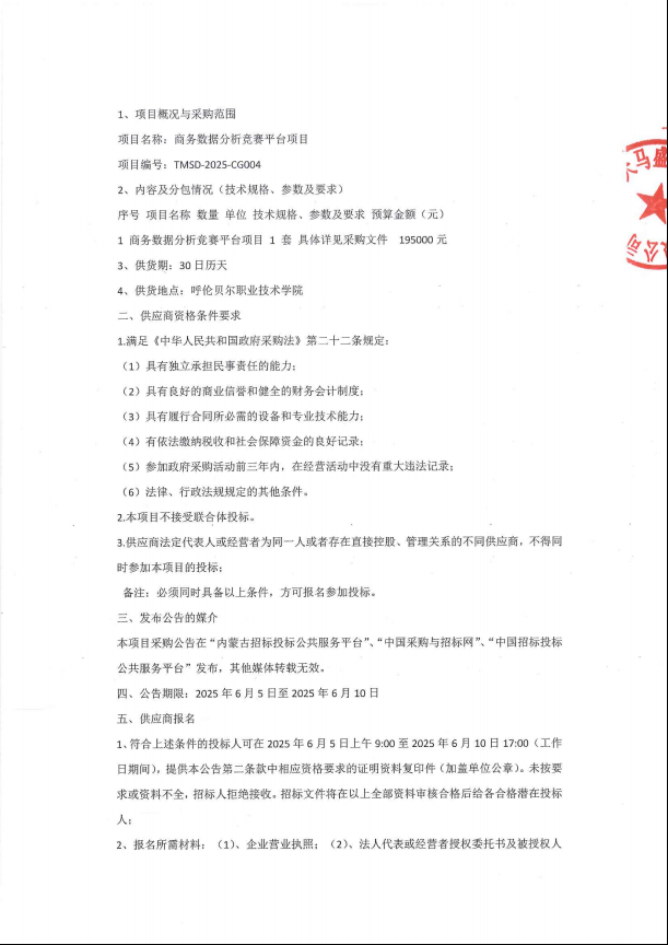 商务数据分析竞赛平台项目采购公告