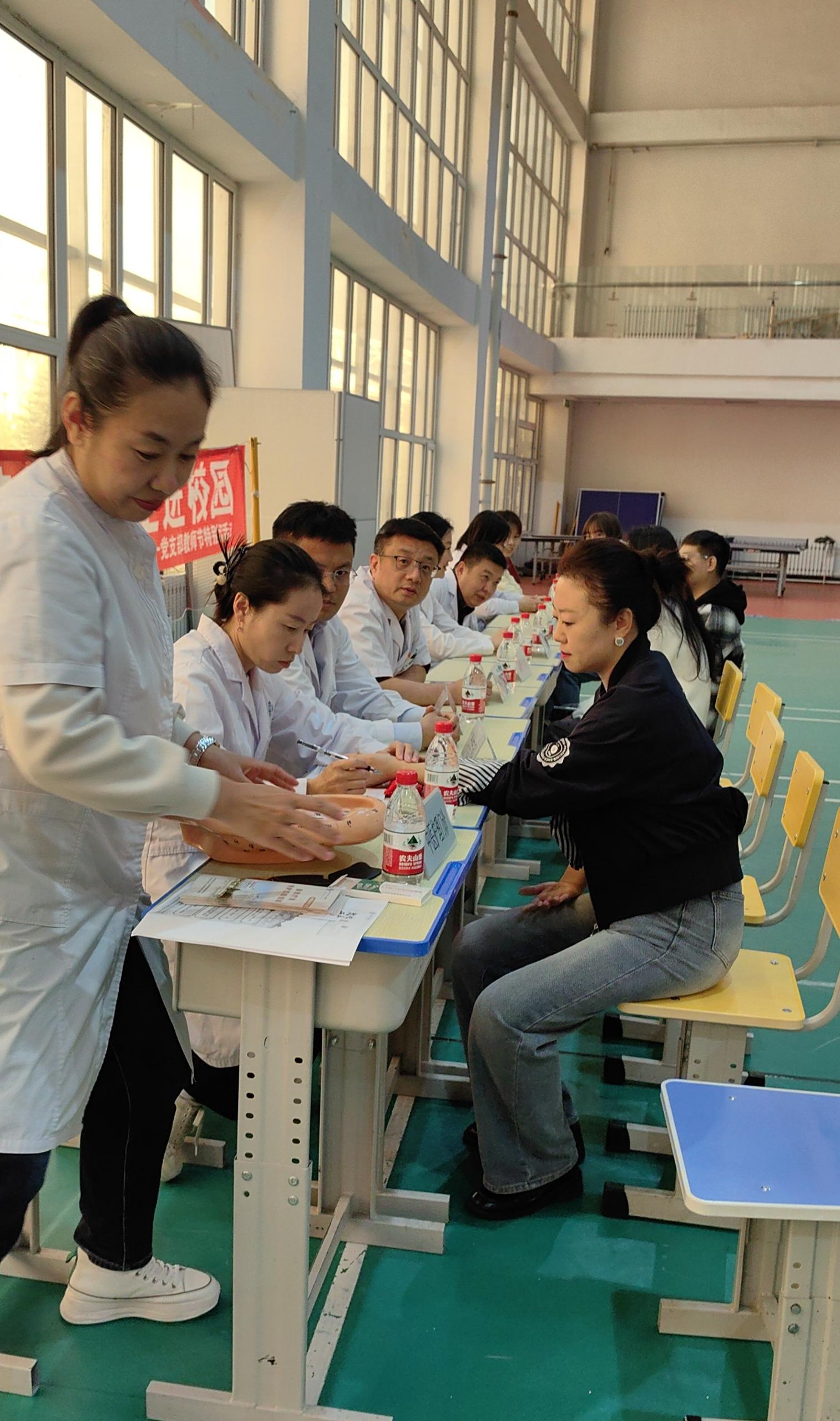 呼伦贝尔市人民医院院抽调了内科、乳腺外科、胸心外科、内分泌科、普通外科、中医科、中医护理科、血管外科等多个领域的骨干医生组成义诊团队,并配备专业的医疗设备。聚焦教师群体的健康需求,整合优质医疗资源,为教师们搭建便捷、专业的健康服务平台,让教师们在工作间隙就能享受到贴心的医疗服务。